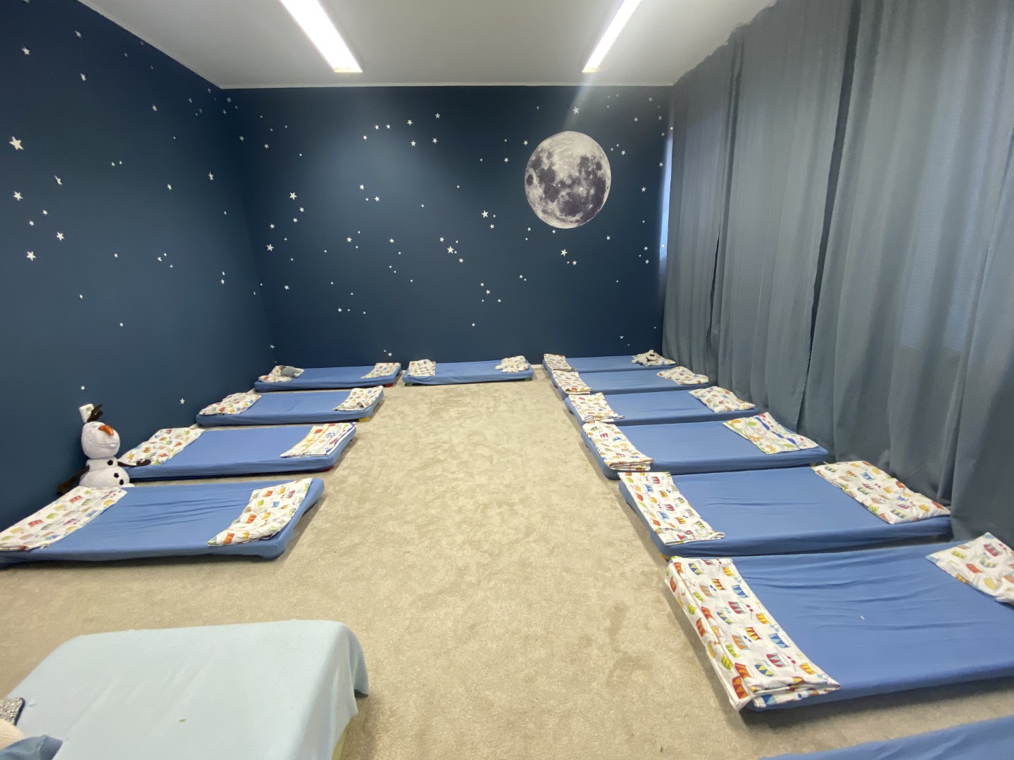 Dbáme aj na rovnováhu medzi aktivitou a oddychom. Naša vlastná spálnička poskytuje deťom pokojný, mäkký a bezpečný priestor, kde môžu načerpať energiu, oddýchnuť si a cítiť sa chránené. Oddych vnímame ako prirodzenú a nevyhnutnú súčasť zdravého vývinu dieťaťa.